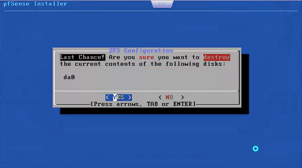 • select <YES> Press Enter to confirm