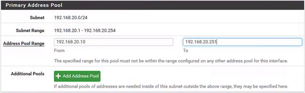• Services DHCP Server LAN_BRIDGE,Enable DHCP server on LAN_BRIDGE interface,Add an IP address pool,NDS Servers 8.8.8.8/223.5.5.5, add gateway 192.168.20.254.