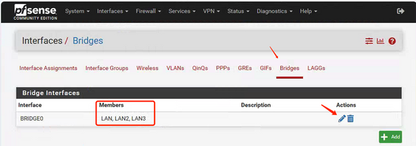 • Edit and add LAN in bridges