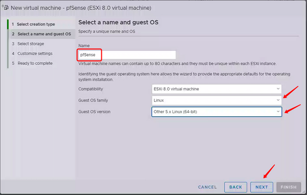 2.select a name and guest OS
