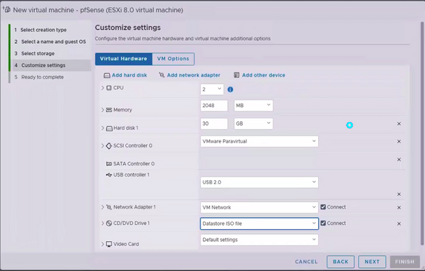• CD/DVD Drive select Datastore ISO file