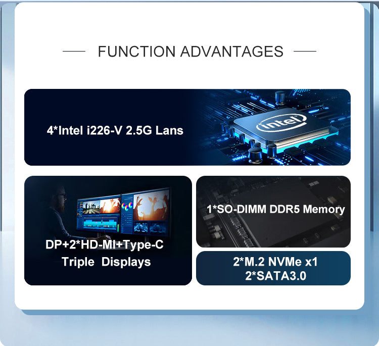 5. 2*M.2 NVMe x1 Slot(Native motherboard built-in, no need for expansion board)