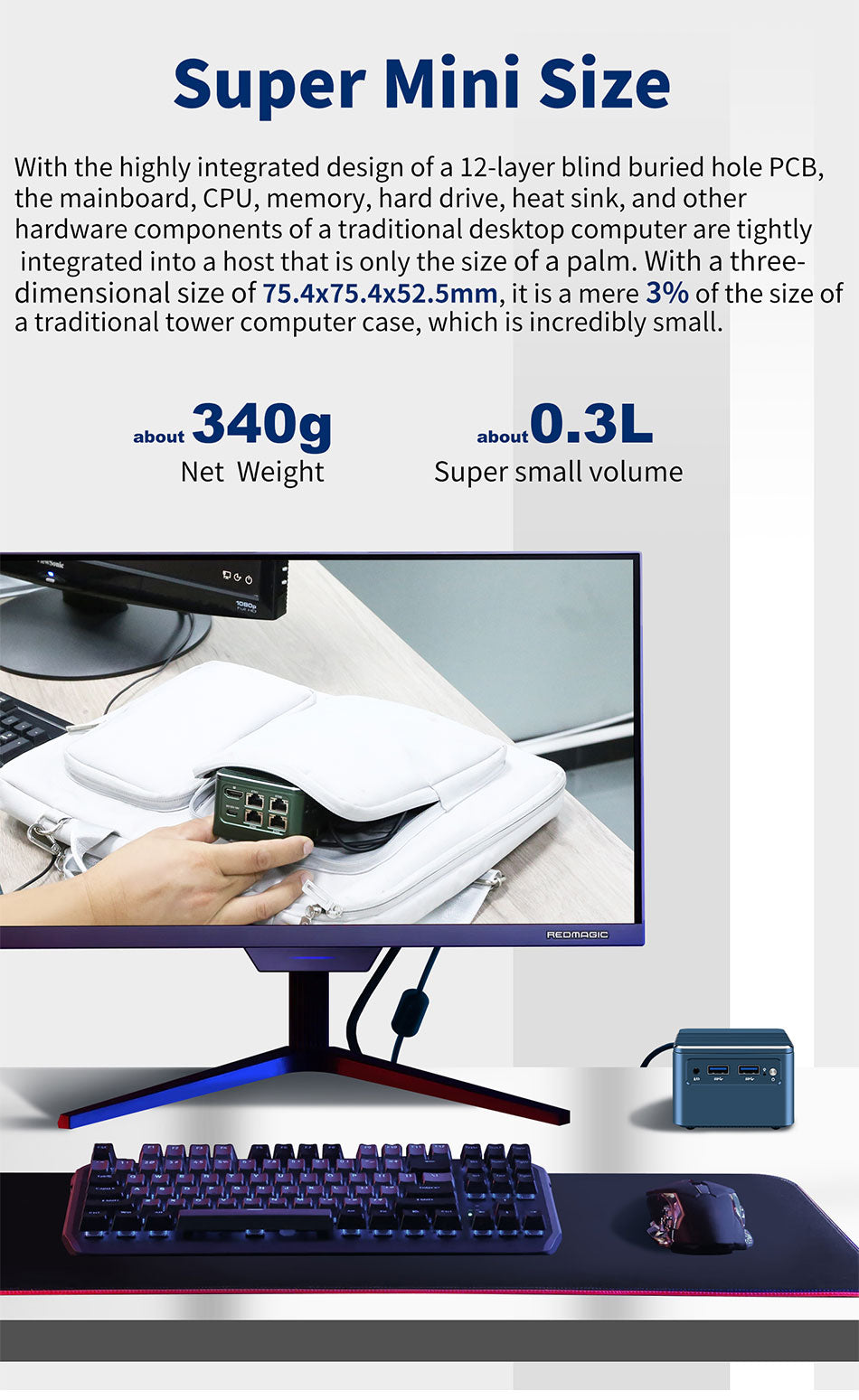 ►【Onboard 8G/16G LPDDR5 RAM】The MR-M1 mini computer is equipped with high-speed 8GB/16GB onboard LPDDR5 memory,barebone(You can purchase an SSD yourself and install it,128GB/256GB/512GB/1TB/2TB SSD optional). The 8GB/16GB LPDDR5 memory ensures that your entire system responds without any delay or hiccups, providing powerful storage capacity without imposing significant strain on system resources. If a larger storage space is required, the SSD can be upgraded to expand storage up to 2TB.