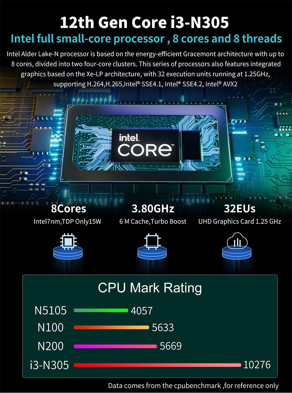 1. Built on the Intel 7nm lithography Alder Lake-N low-power platform